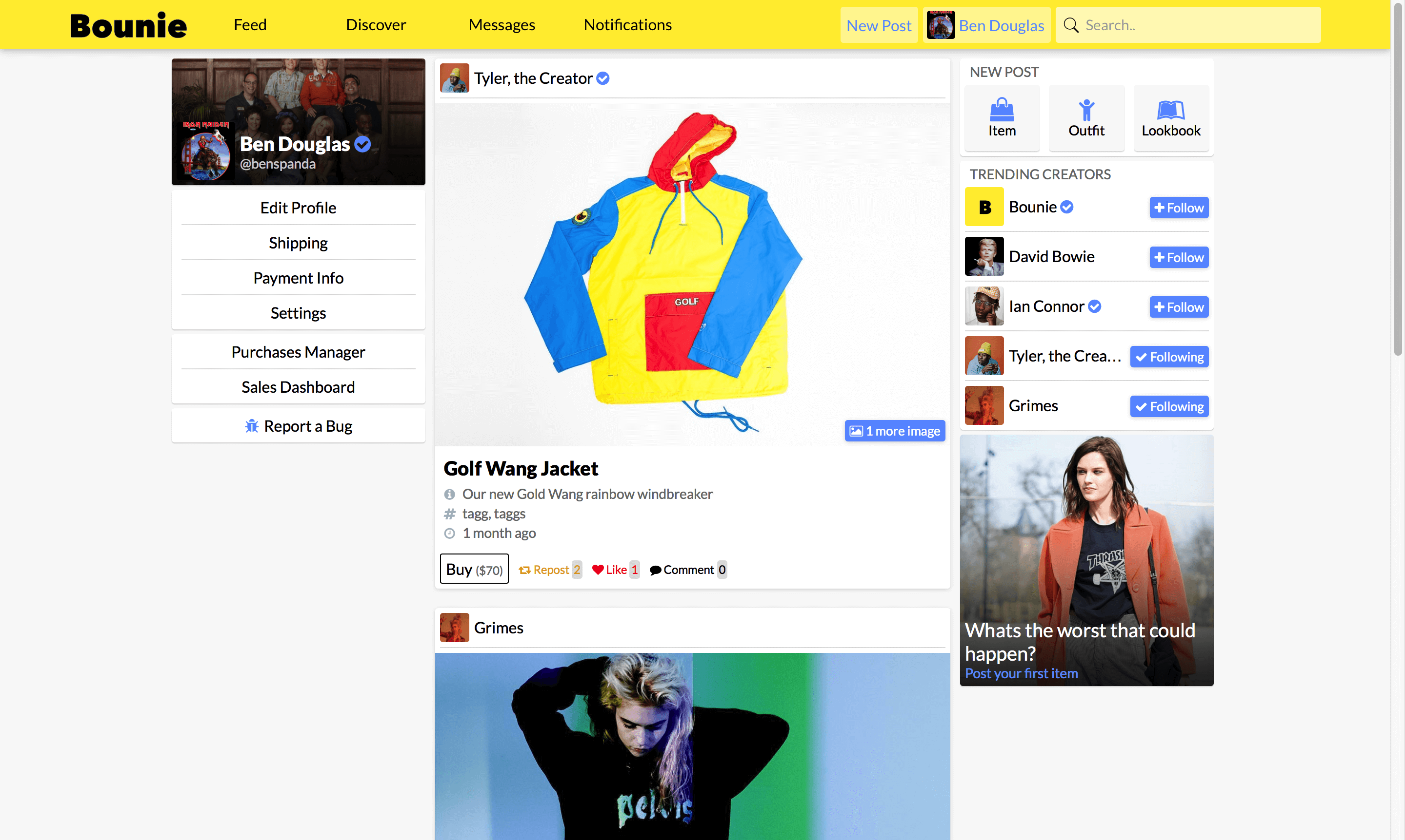 A large solo venture in which I built a fully featured market place with a social network twist.