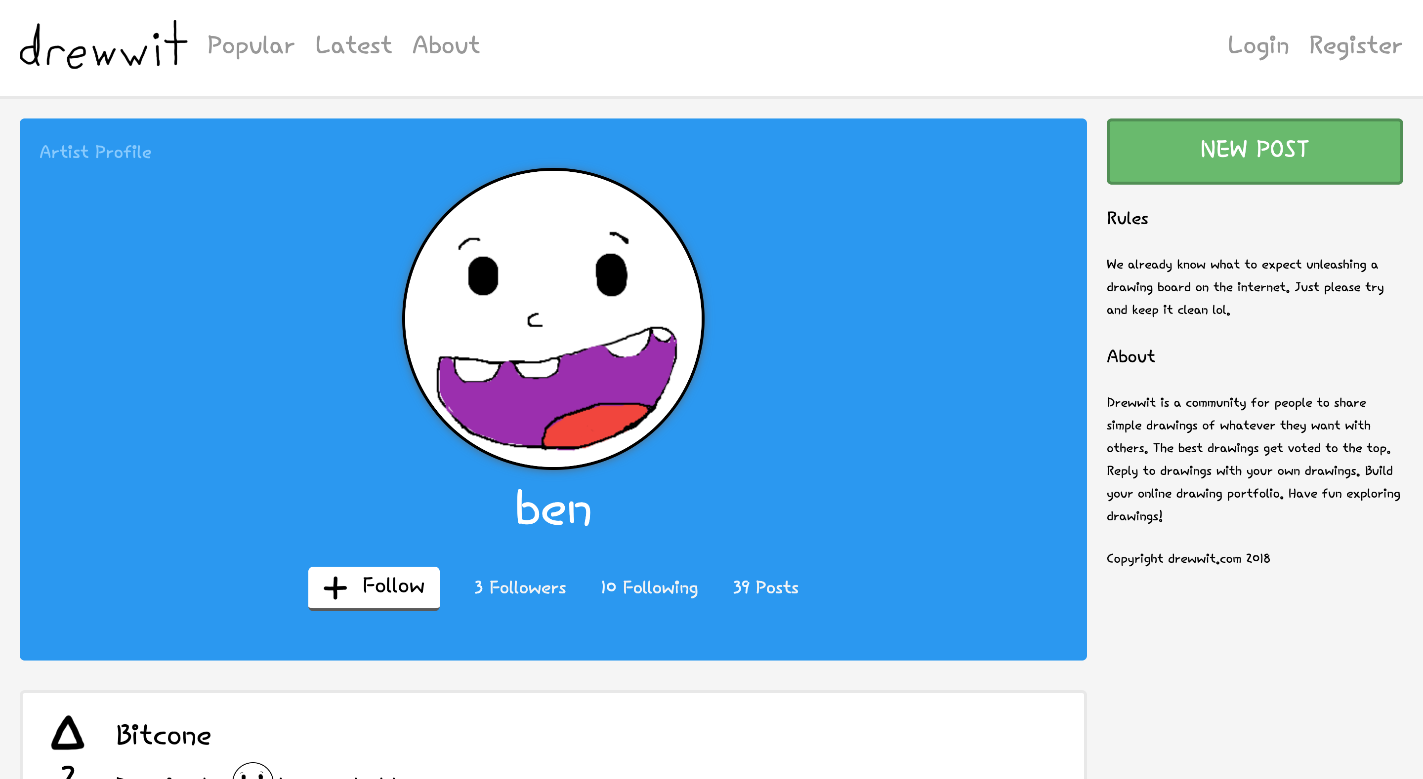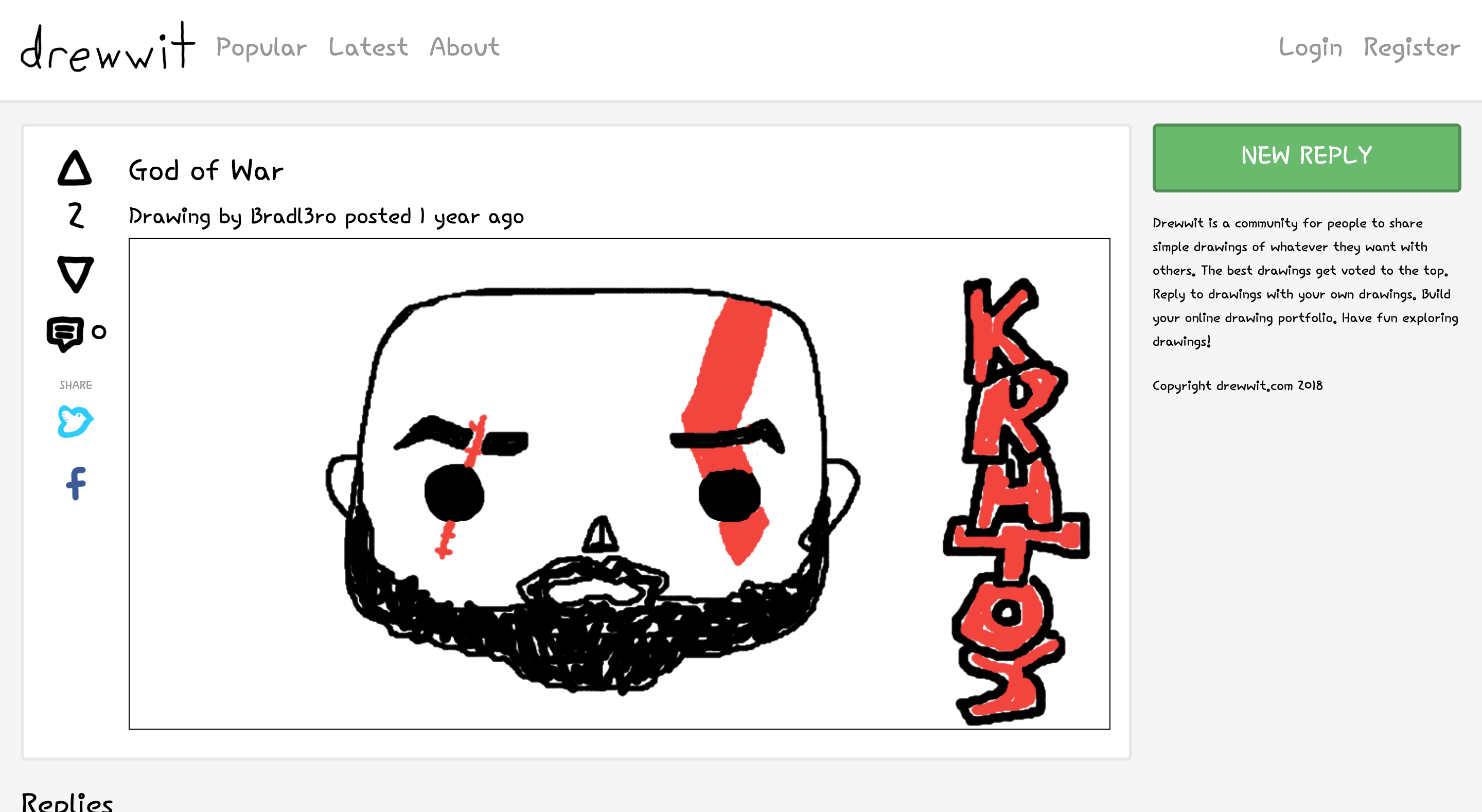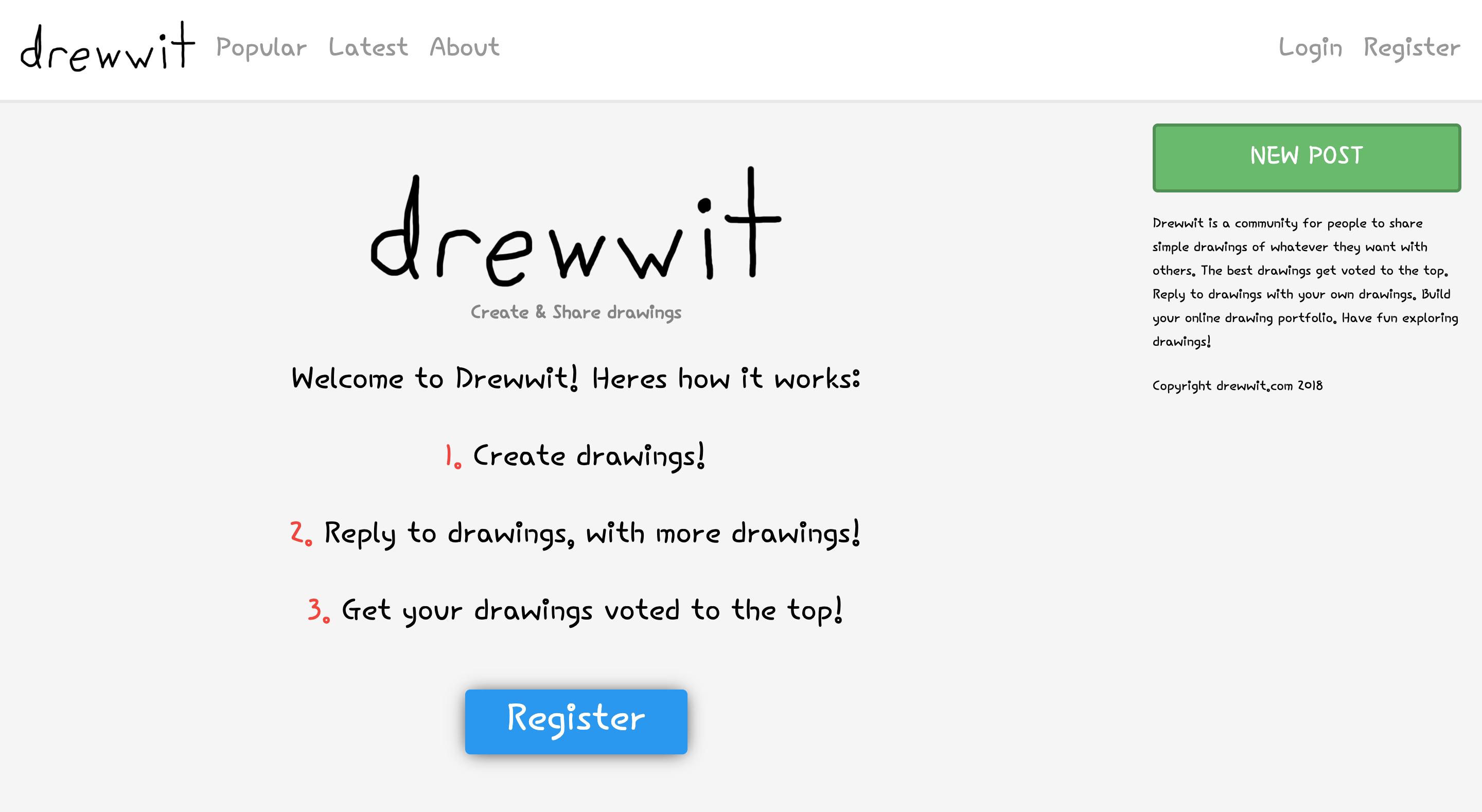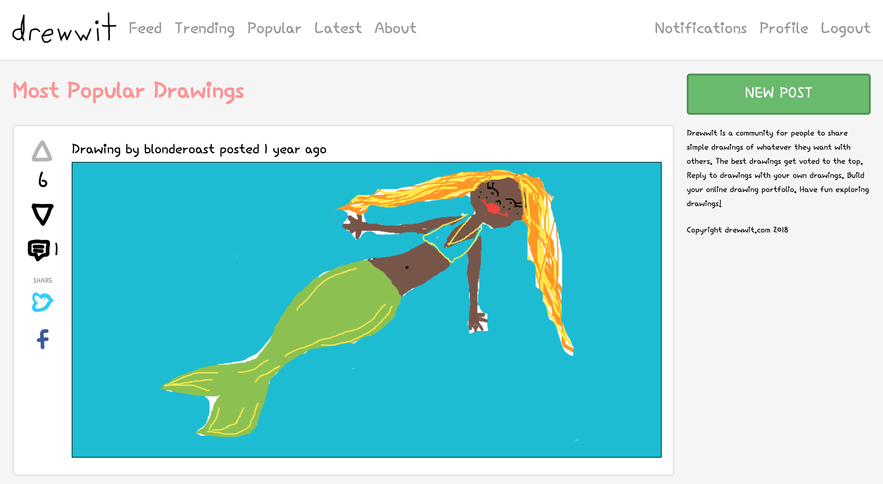 Drewwit is a community for people to create and share simple drawings of whatever they want with others. The best drawings get voted to the top.