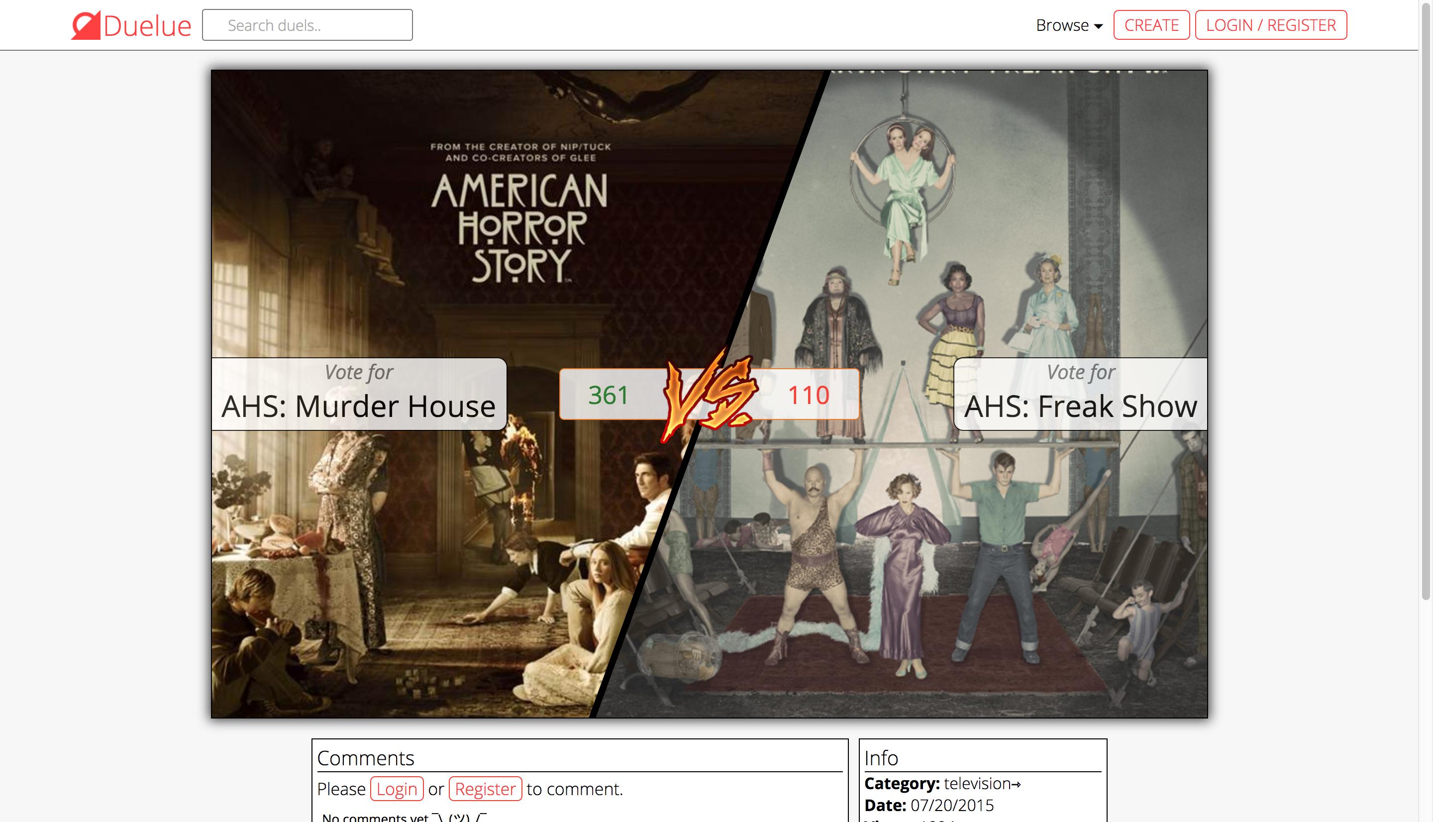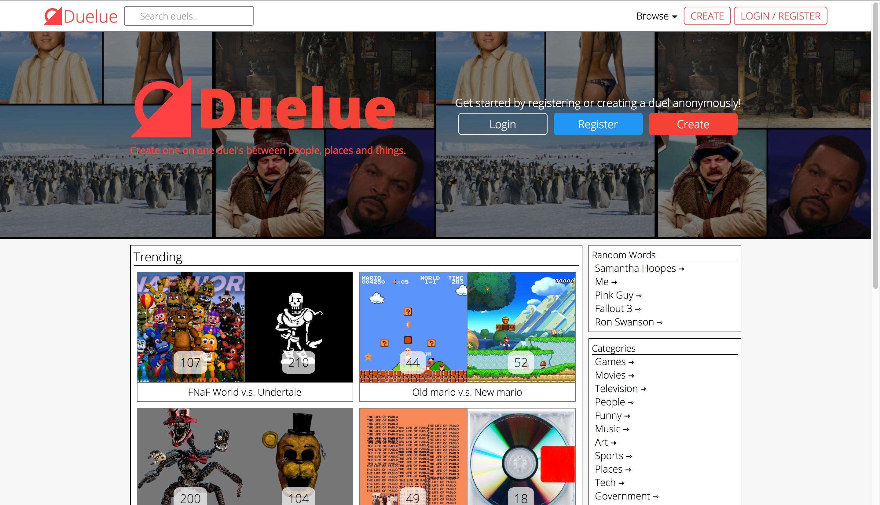Easily and anonymously create duels between any two things, so other users can anonymously vote on which is better.