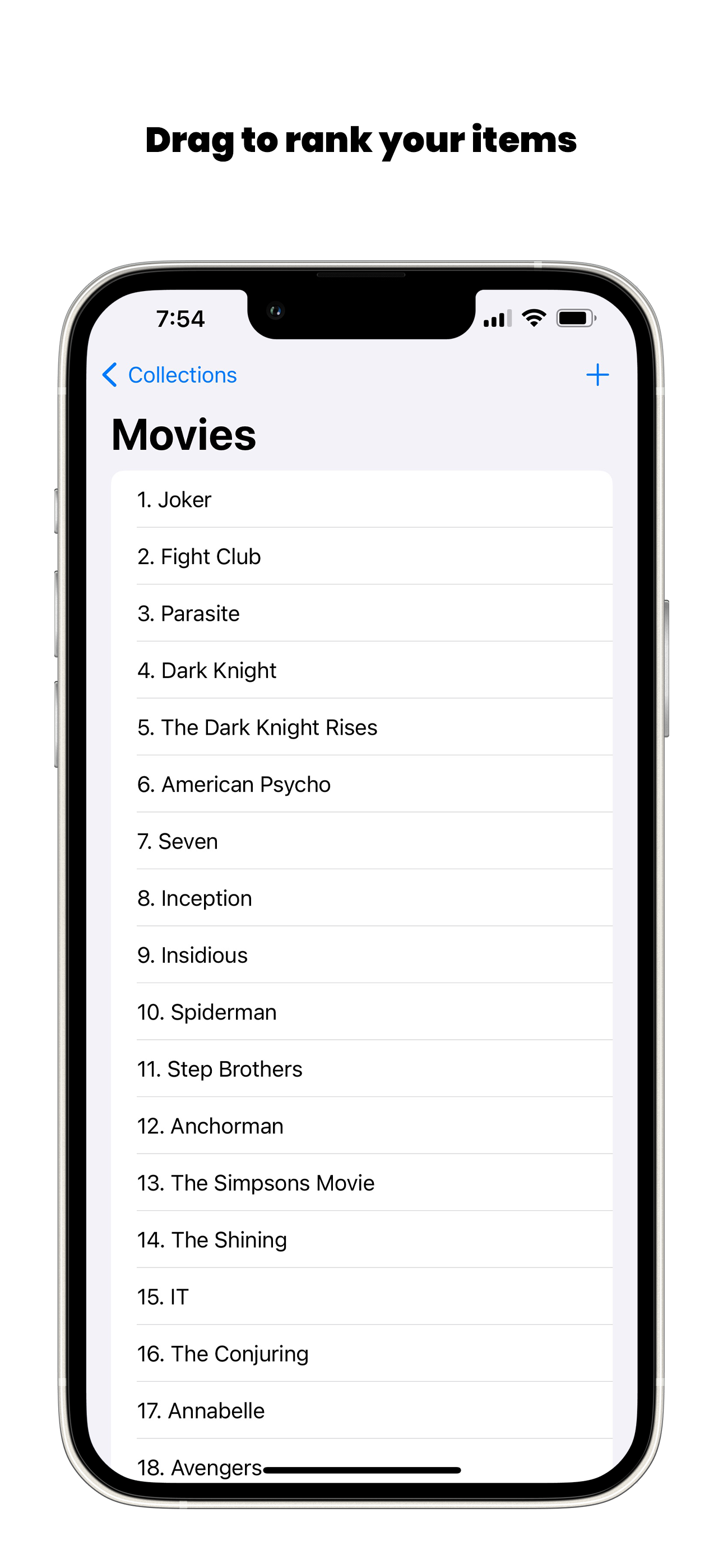 Track and organize your collections by grouping them into lists and ranking them.